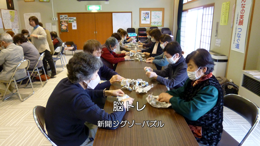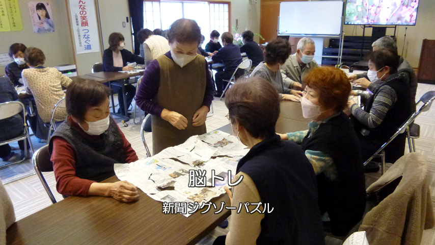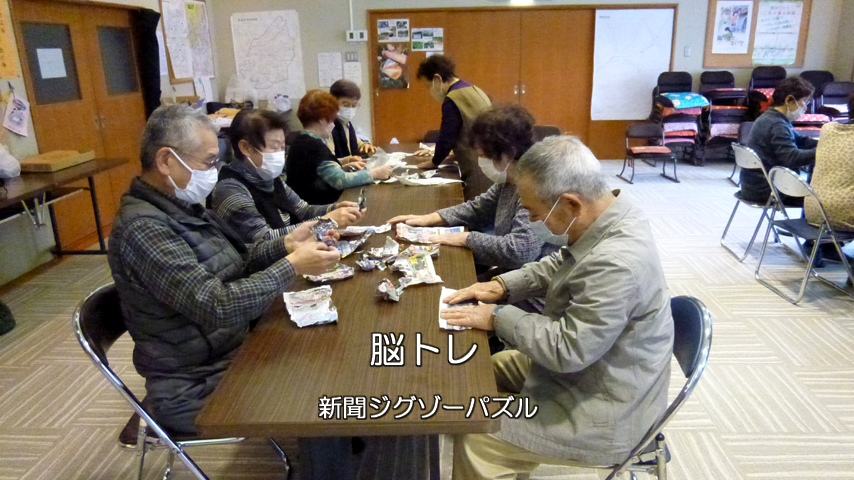 ・脳トレ 指体操、新聞ジグゾウパズル、数字当てゲーム。